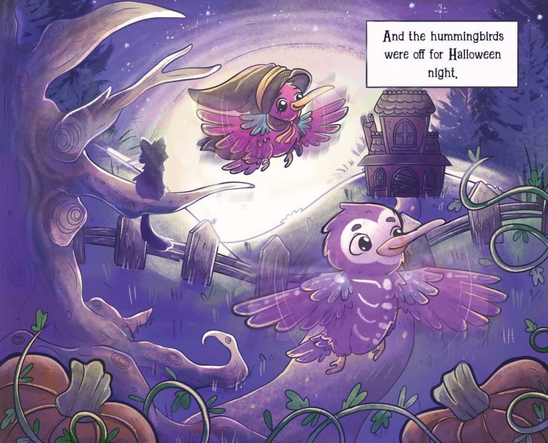 Follow two hummingbirds on their whimsical adventure during Halloween.